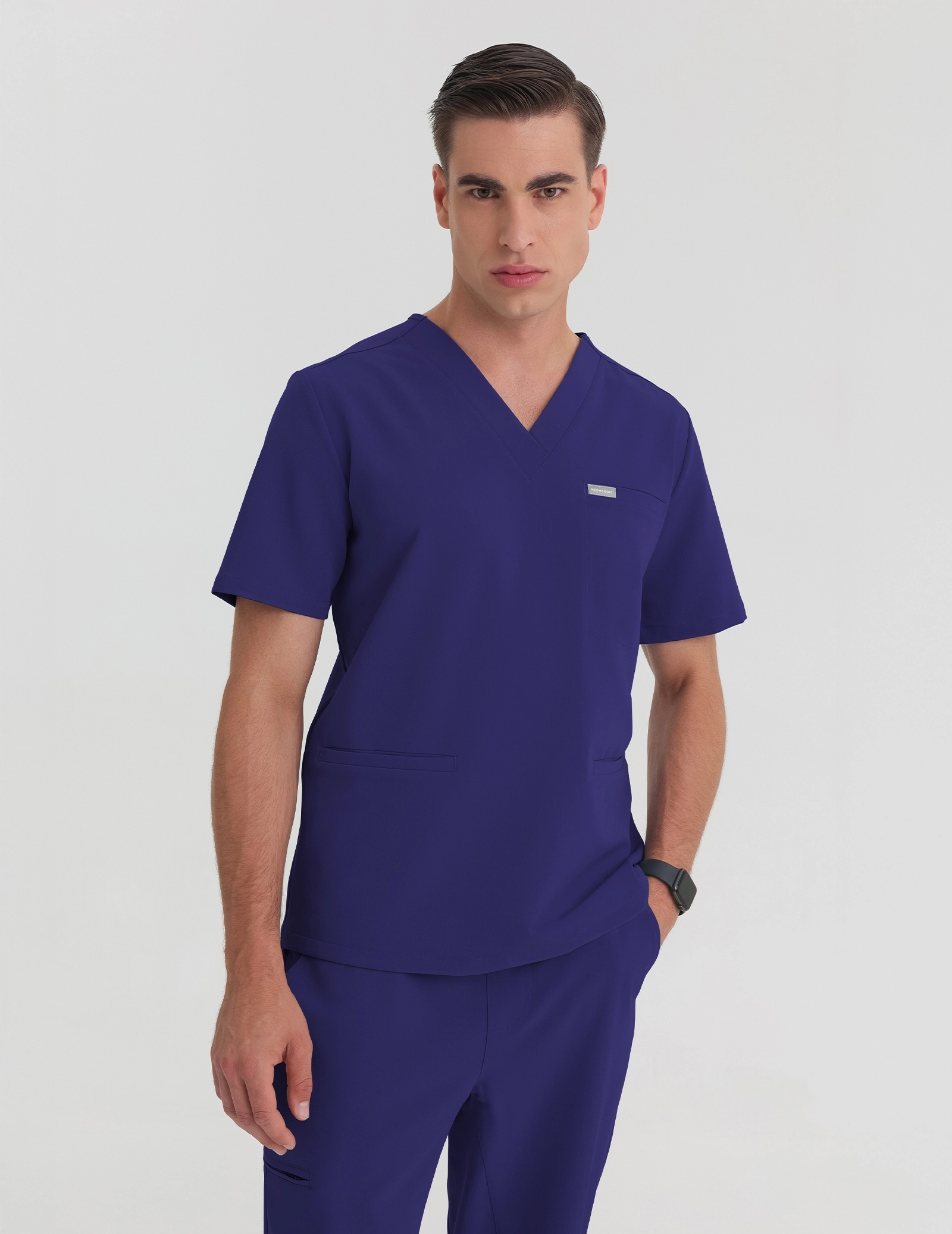 A Férfi Orvosi Felső Birbal - DUSK a Medhoodie márkától a kényelem és a funkcionalitás tökéletes kombinációját kínálja. Kiváló minőségű anyagból készült, amely egész napos kényelmet és mozgásszabadságot biztosít. A rövid ujj és a V-alakú nyakkivágás modern, letisztult megjelenést kölcsönöz, míg a karcsúsított szabás kényelmes viseletet nyújt.